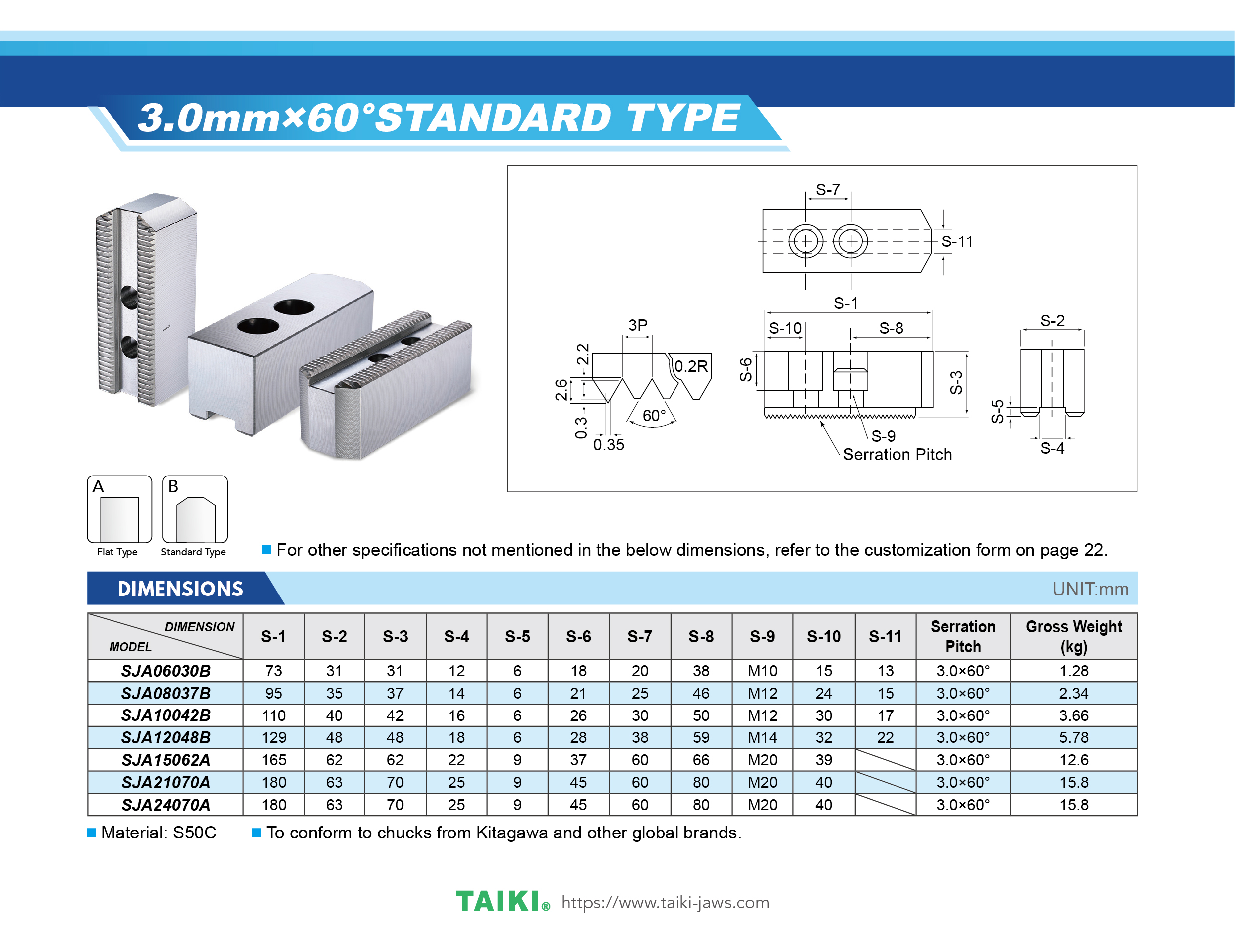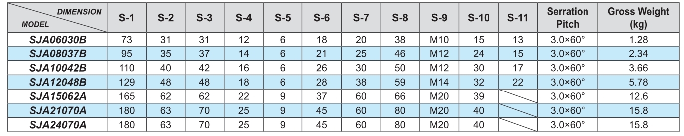 - Serration Pitch:3.0mm×60°