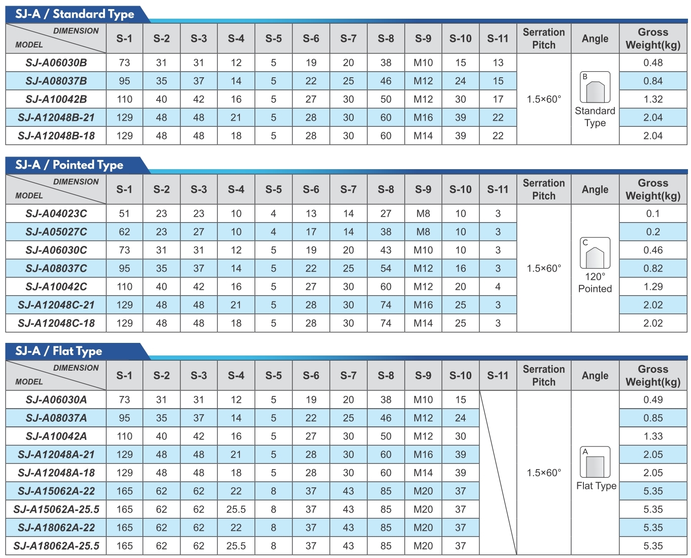 - Serration Pitch:1.5mm×60°
