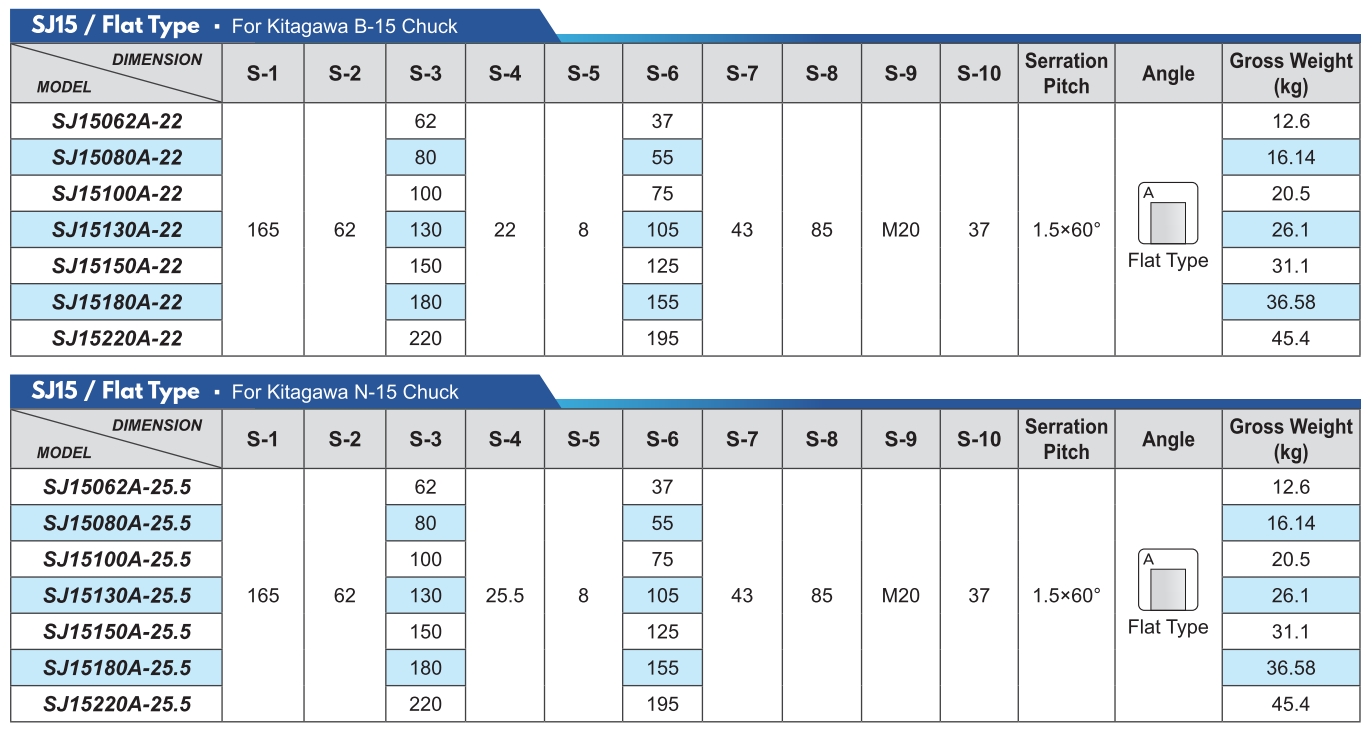 - For sizes not listed, please refer to the "Soft Jaw Customization Form" on page 22 of the catalog.
